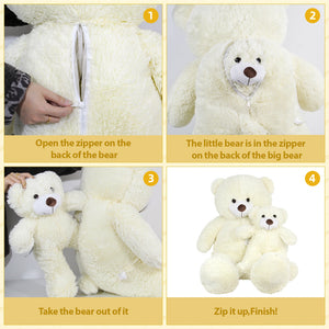 - UNIQUE DESIGN: 2-in-1 teddy bear set featuring a large 33.4-inch plush with a hidden zippered compartment that stores a matching 17.7-inch smaller bear
