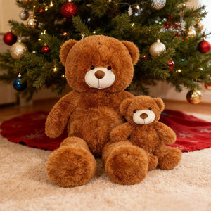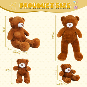 SRANWOW 2-in-1 Teddy Bear Plush Set, 39.4 inch Large & 17.7 inch Small, Stuffed Animal with Hidden Storage (Dark Brown)