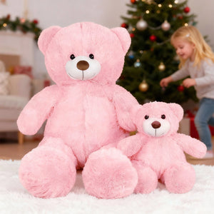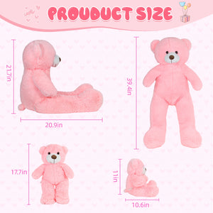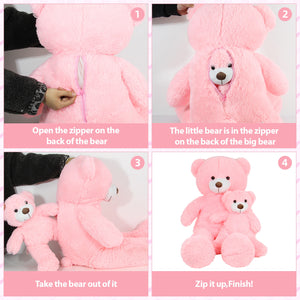 SRANWOW 2-in-1 Teddy Bear Plush Set, 39.4 inch Large & 17.7 inch Small, Stuffed Animal with Hidden Storage (Pink)