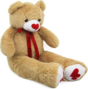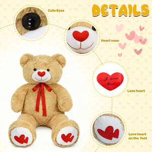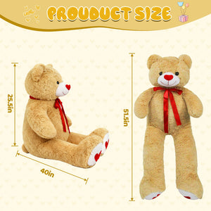SRANWOW 51.2 Inch Giant Teddy Bear with Soft Heart Pillow, Plush Stuffed Animal, Valentine's Day Gift (Light Brown)