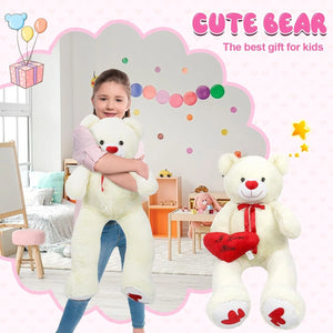 SRANWOW 51.2 Inch Giant Teddy Bear with Soft Heart Pillow, Plush Stuffed Animal, Valentine's Day Gift (White)