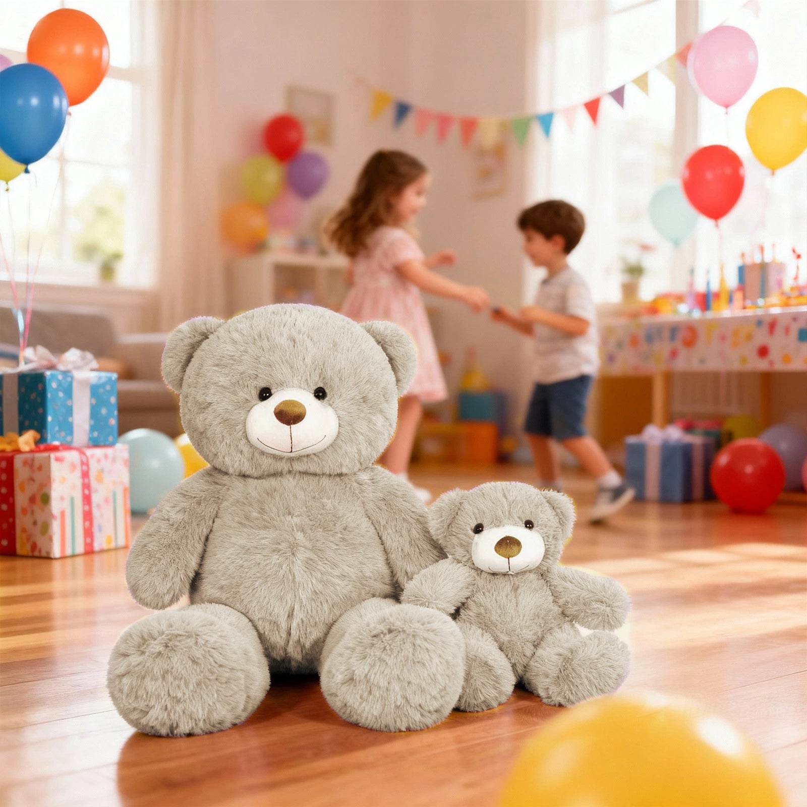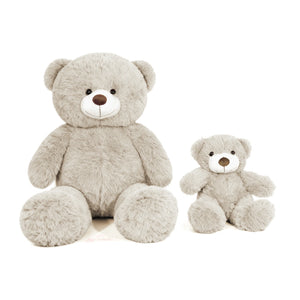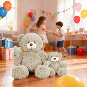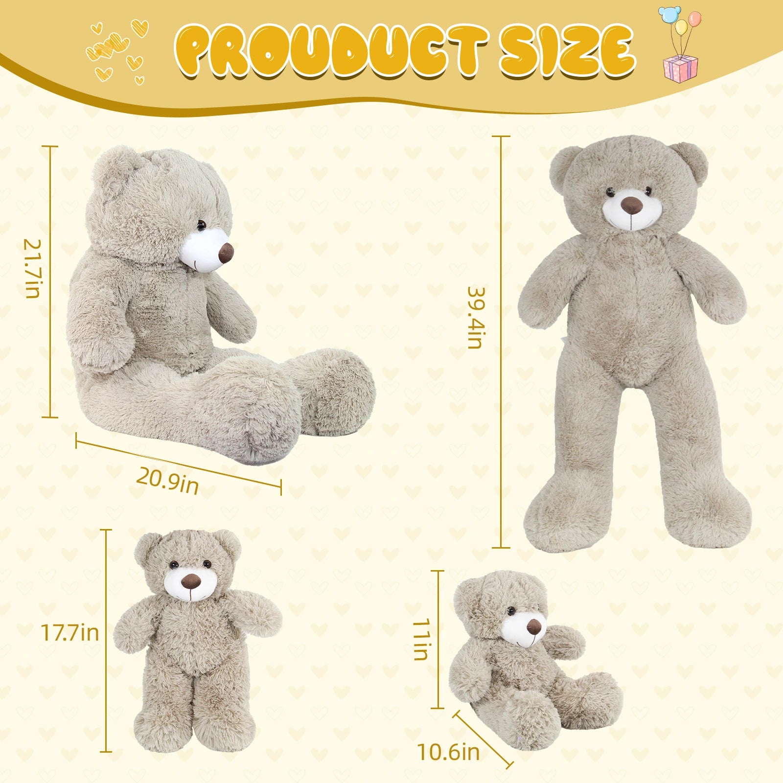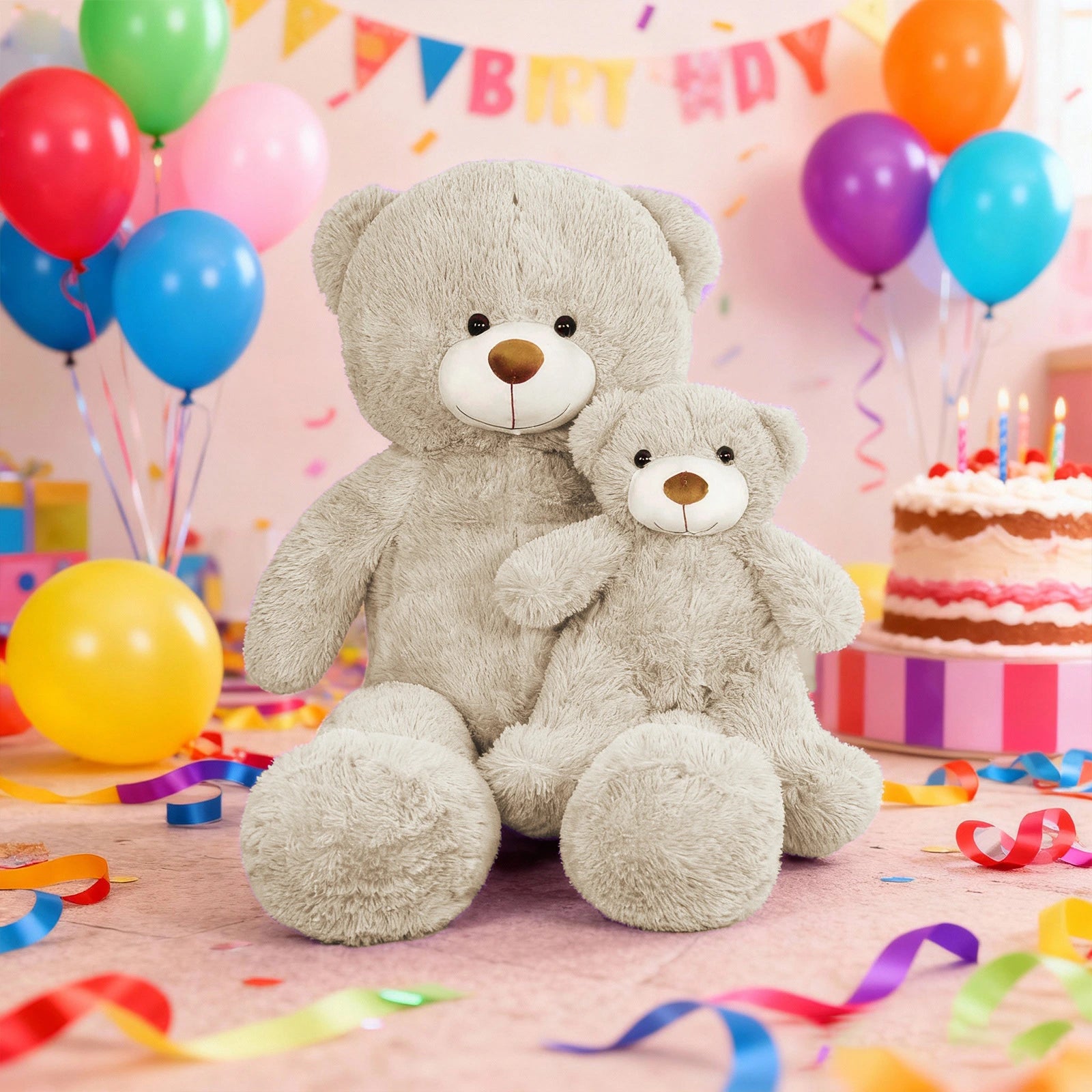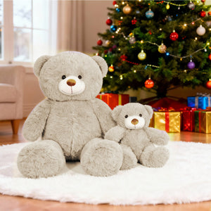SRANWOW 2-in-1 Teddy Bear Plush Set, 39.4 inch Large & 17.7 inch Small, Stuffed Animal with Hidden Storage (Gray)