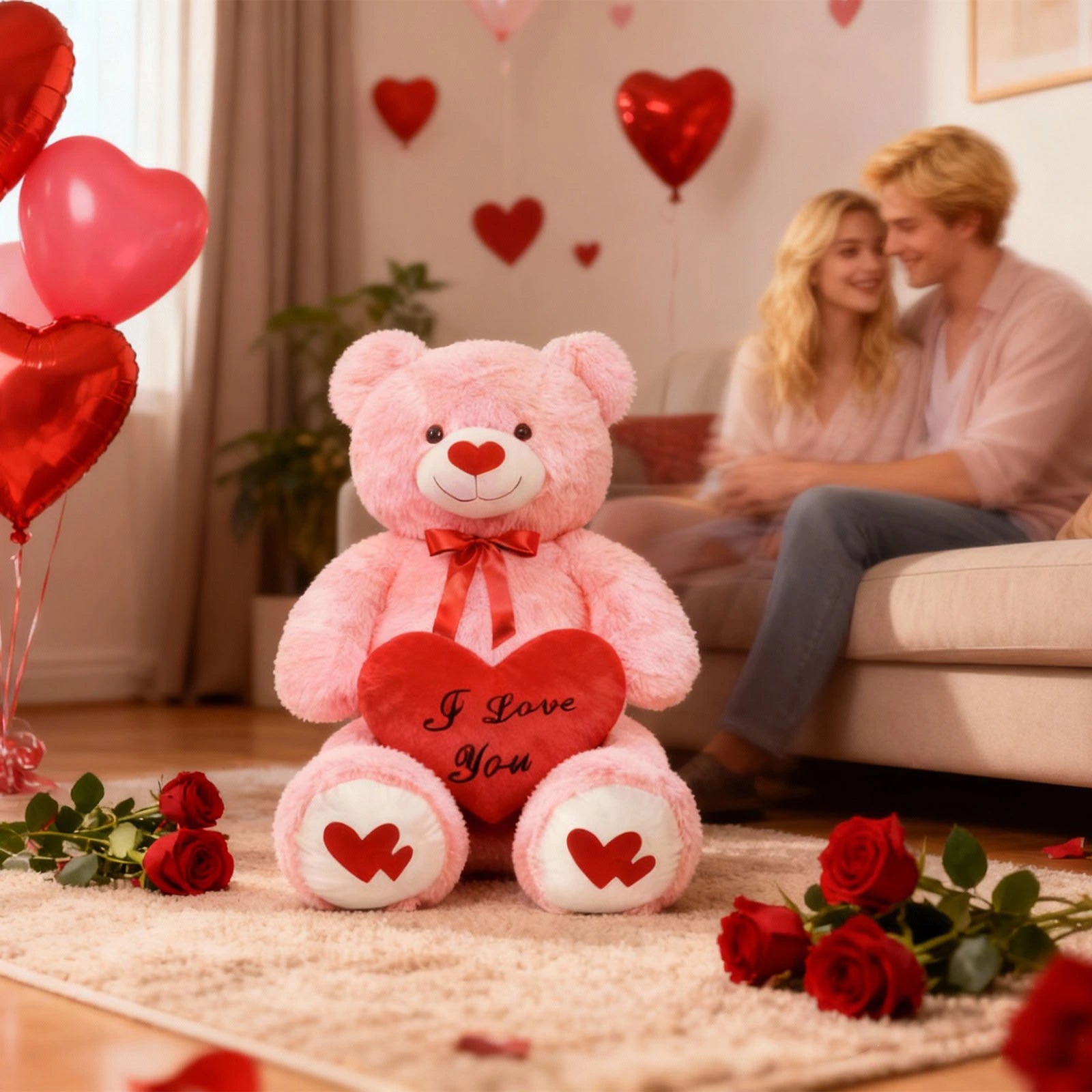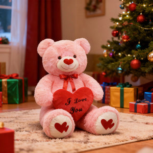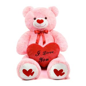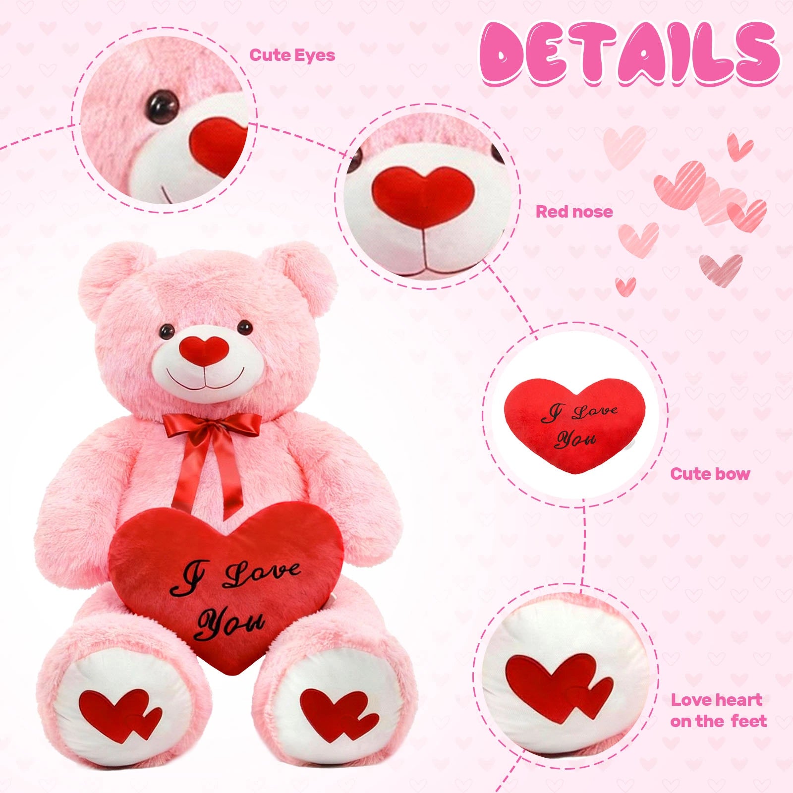 SRANWOW 43.3 Inch Giant Teddy Bear with Soft Heart Pillow, Plush Stuffed Animal, Valentine's Day Gift (Pink)