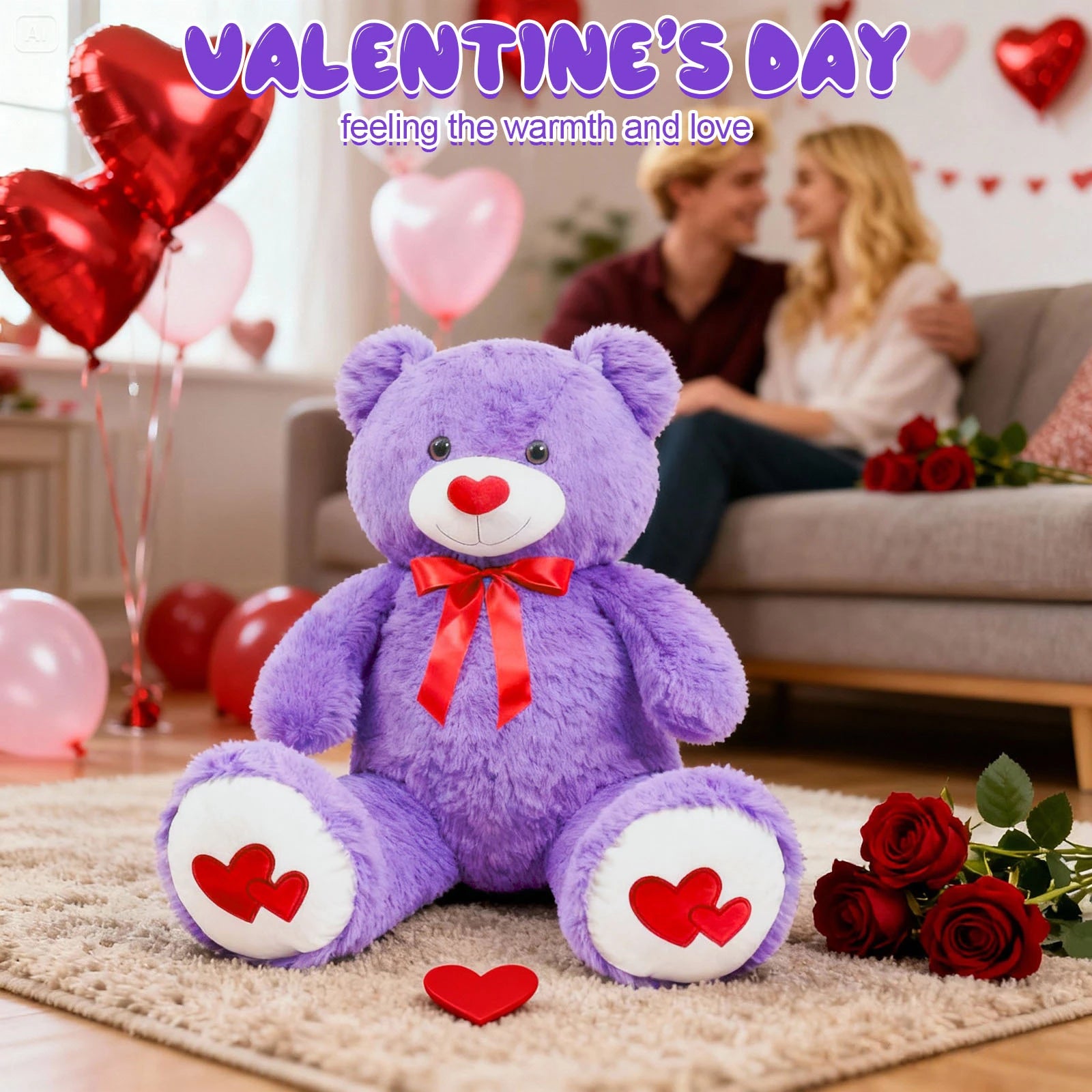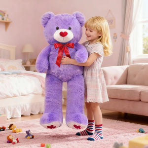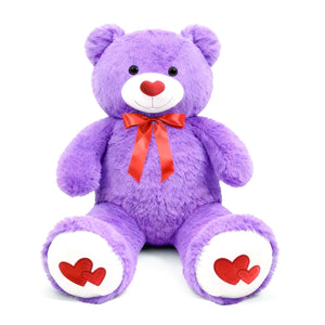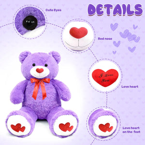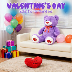 SRANWOW 43.3 Inch Giant Teddy Bear with Soft Heart Pillow, Plush Stuffed Animal, Valentine's Day Gift (Purple)