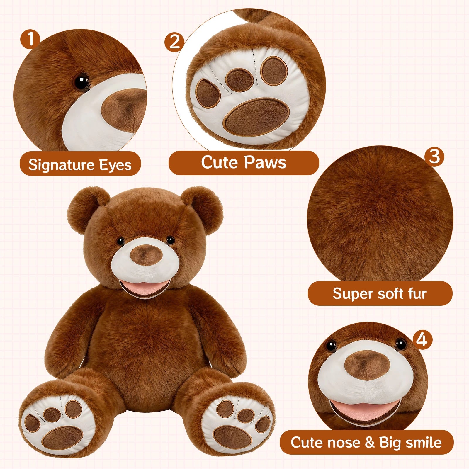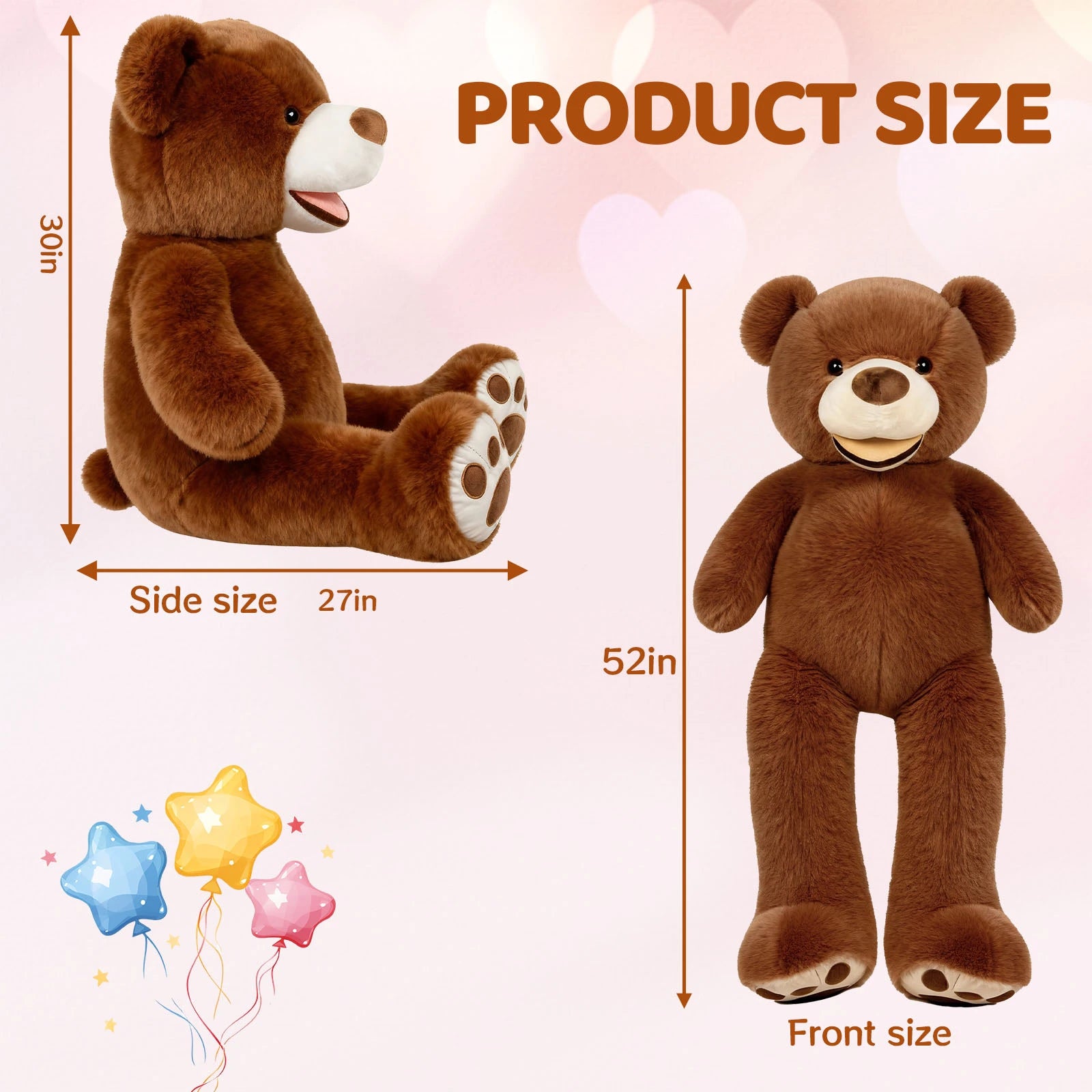 SRANWOW 52 Inches Giant Plush Teddy Bear Soft Gray Stuffed Animal with Paw Details (Dark Brown)