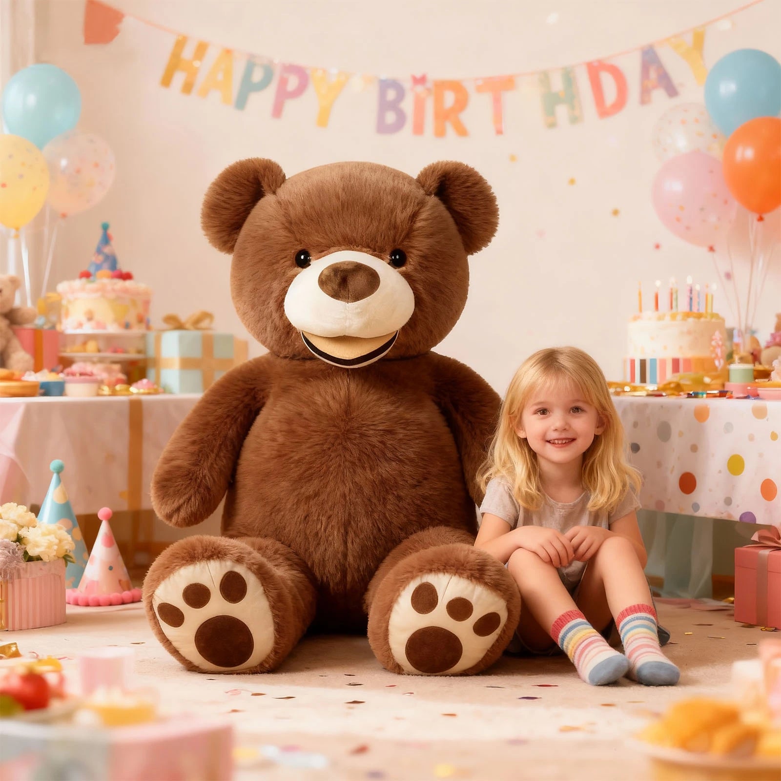 - DECORATIVE APPEAL: Makes an eye-catching addition to bedrooms, playrooms, or nurseries with its oversized proportions. Ideal for birthdays, holidays, or special occasions, this oversized plush bear makes a memorable and heartwarming present.