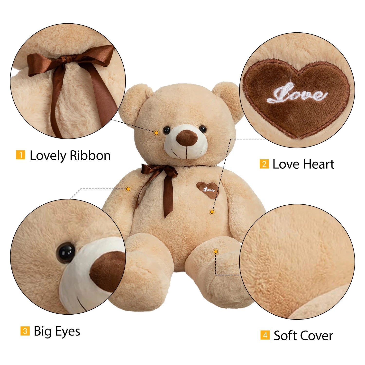 GIANT SIZE: Available in impressive sizes of 45 inches (approx. 3.8 feet) and 53 inches (approx. 4.4 feet). These oversized teddy bears are perfect for big hugs, acting as a cozy body pillow or a standout decorative piece in any room.