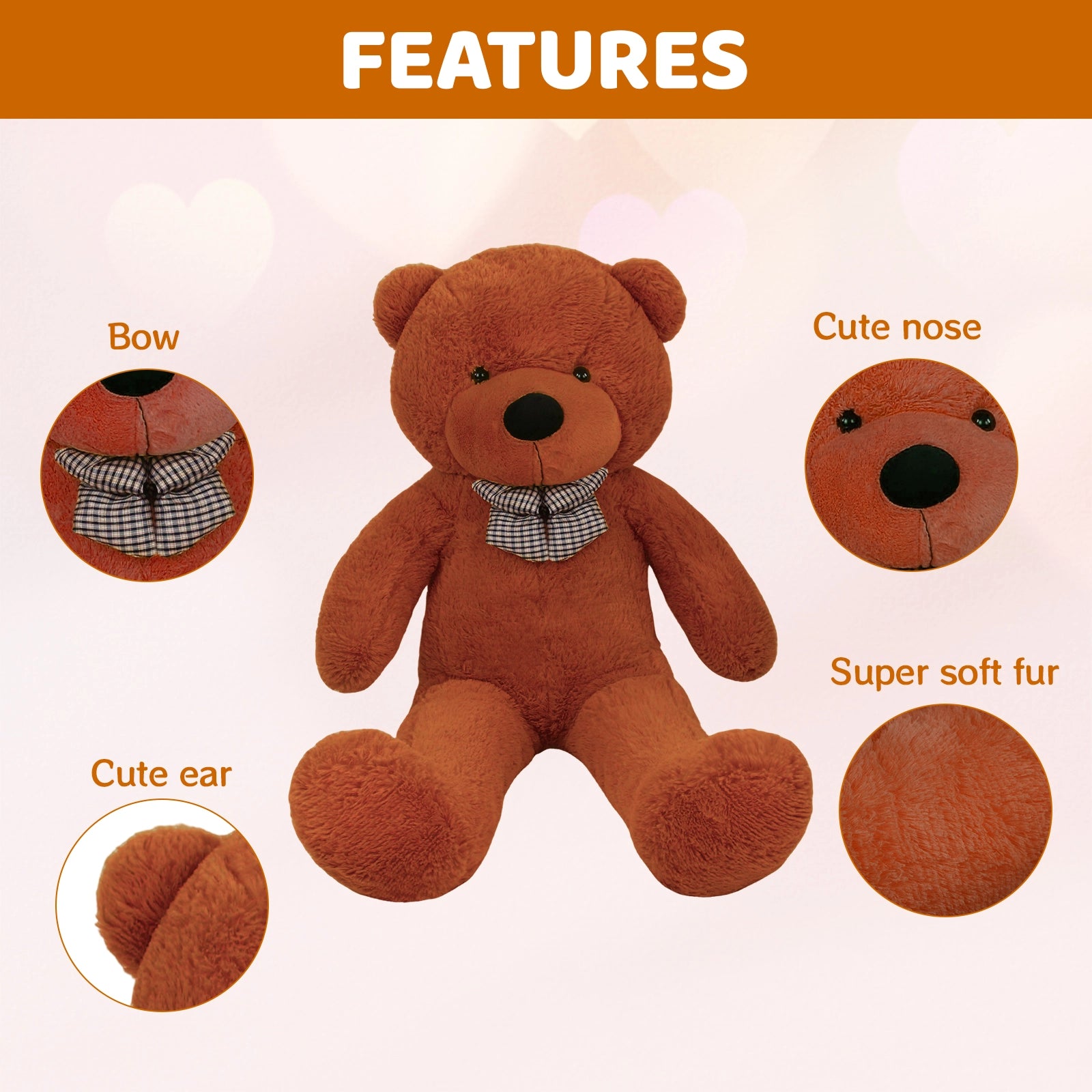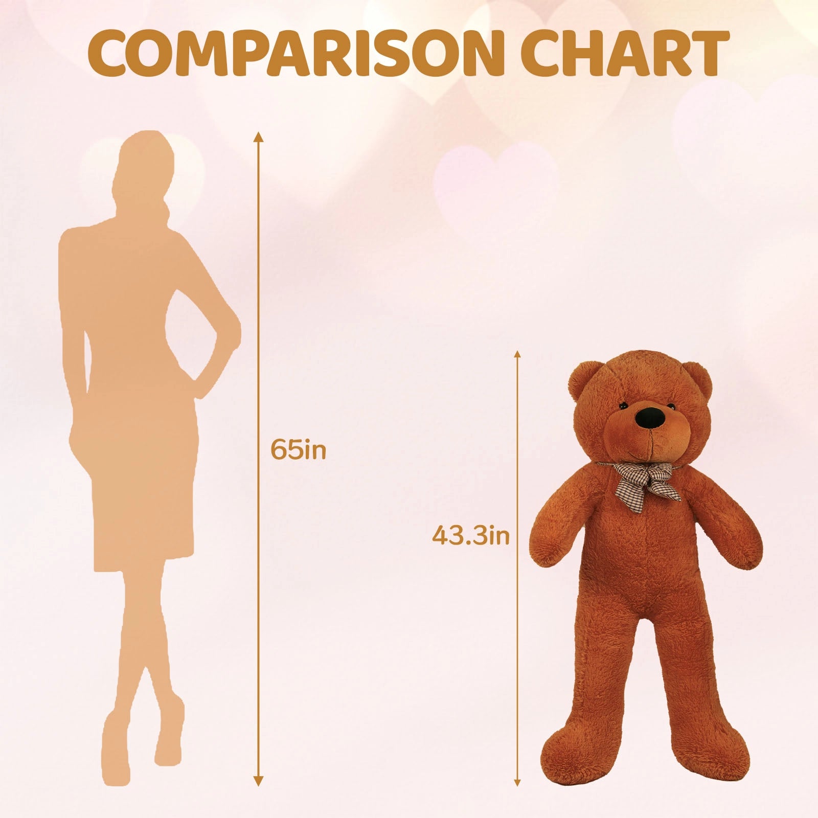- GIANT SIZE: Impressive 43.3 / 51.2 / 59 / 67 inches tall teddy bear, perfect for cuddling and decorative displays.