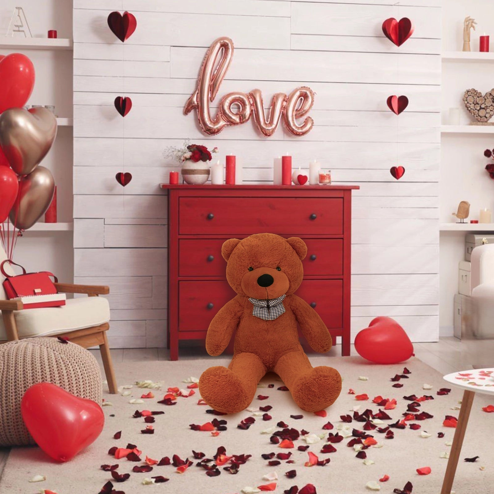 SRANWOW Giant Teddy Bear with Bow Tie, 43.3 Inches Tall, Super Soft Plush(Dark brown)
