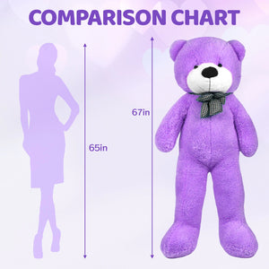 SRANWOW Giant Teddy Bear with Bow Tie, 67 Inches Tall, Super Soft Plush (Purple)
