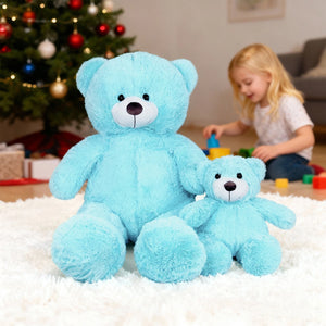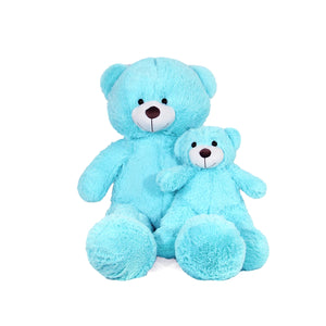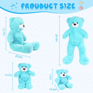 SRANWOW 2-in-1 Teddy Bear Plush Set, 39.4 inch Large & 17.7 inch Small, Stuffed Animal with Hidden Storage (Blue)