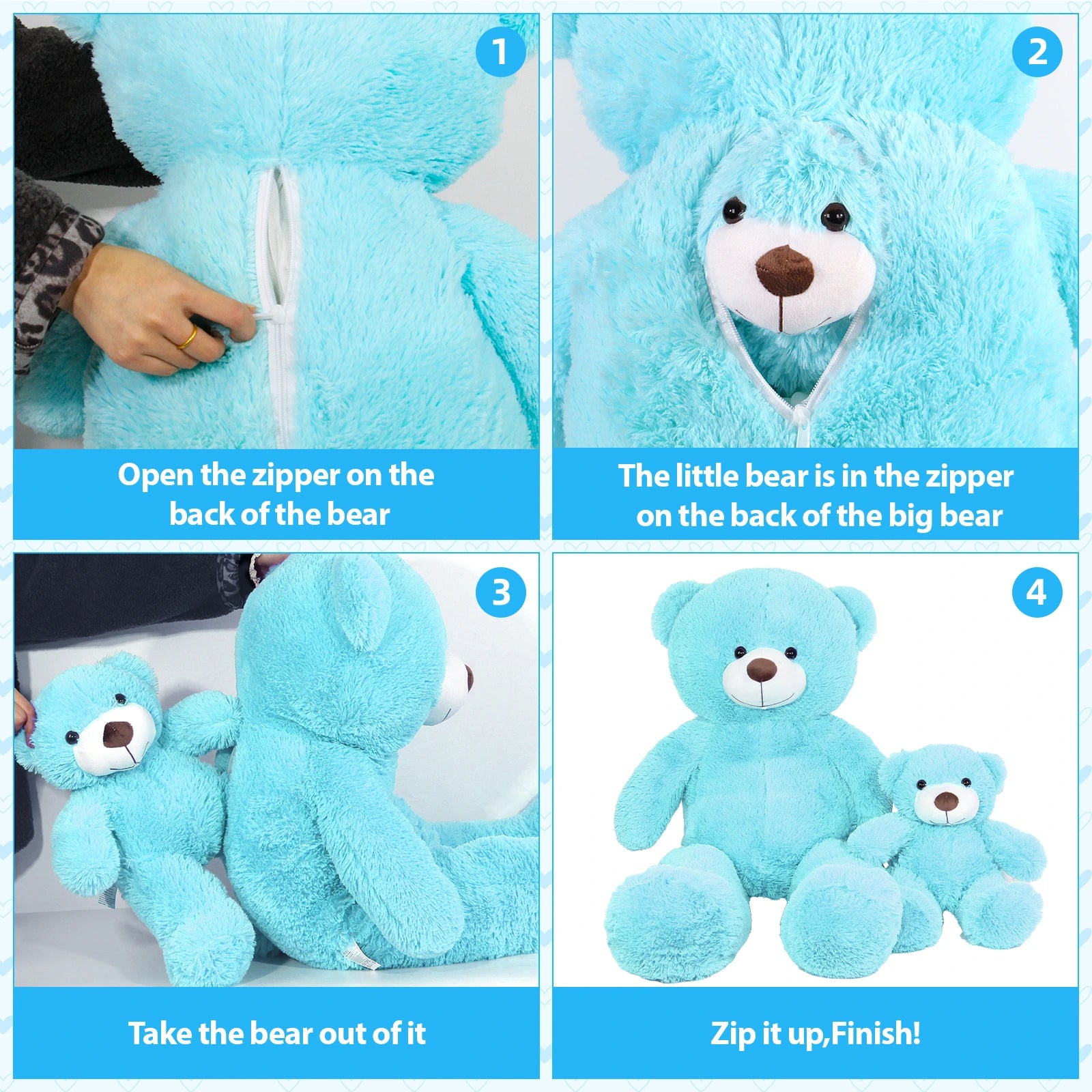 • UNIQUE DESIGN: 2-in-1 teddy bear set featuring a large 33.4-inch plush with a hidden zippered compartment that stores a matching 17.7-inch smaller bear