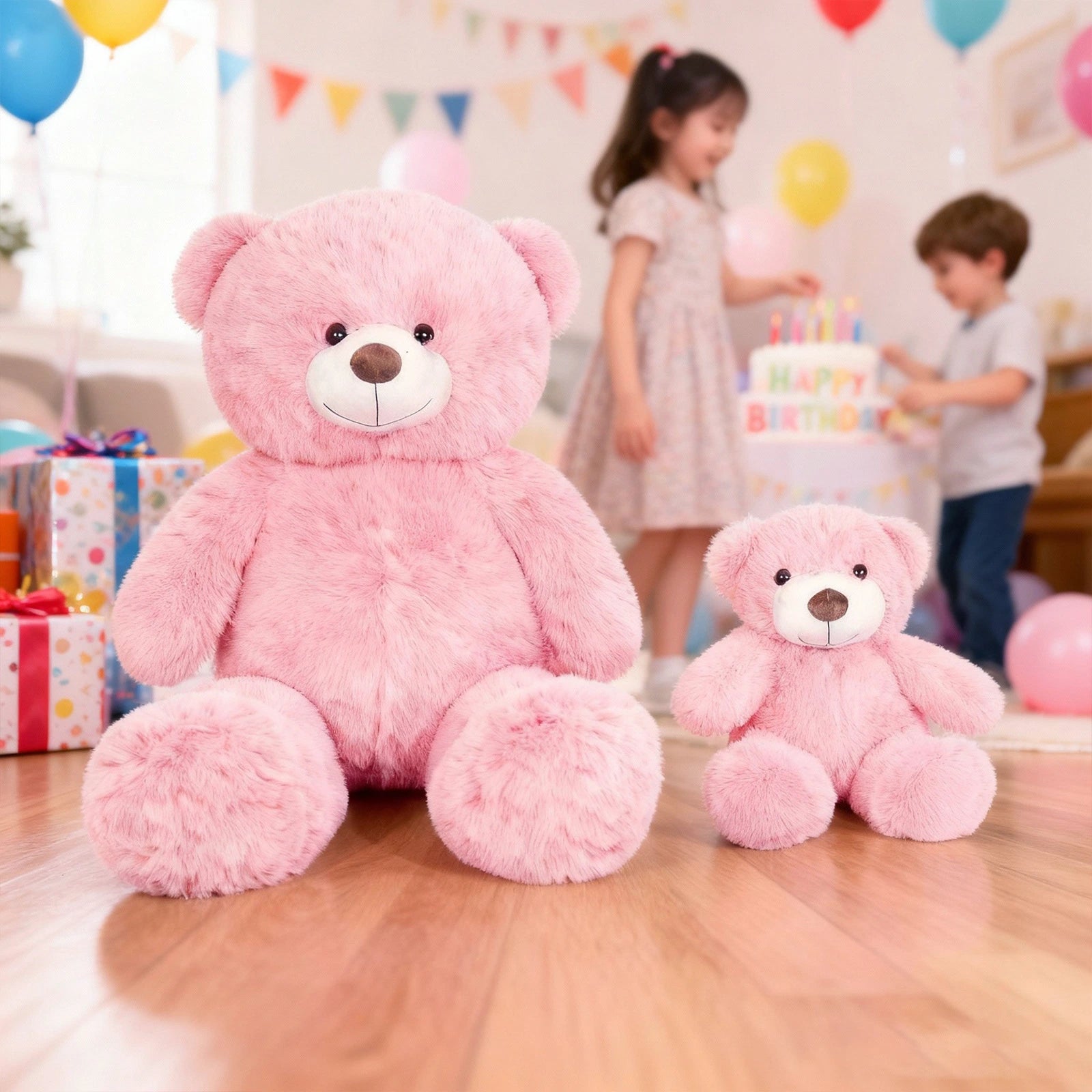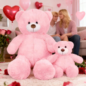 SRANWOW 2-in-1 Teddy Bear Plush Set, 39.4 inch Large & 17.7 inch Small, Stuffed Animal with Hidden Storage (Pink)