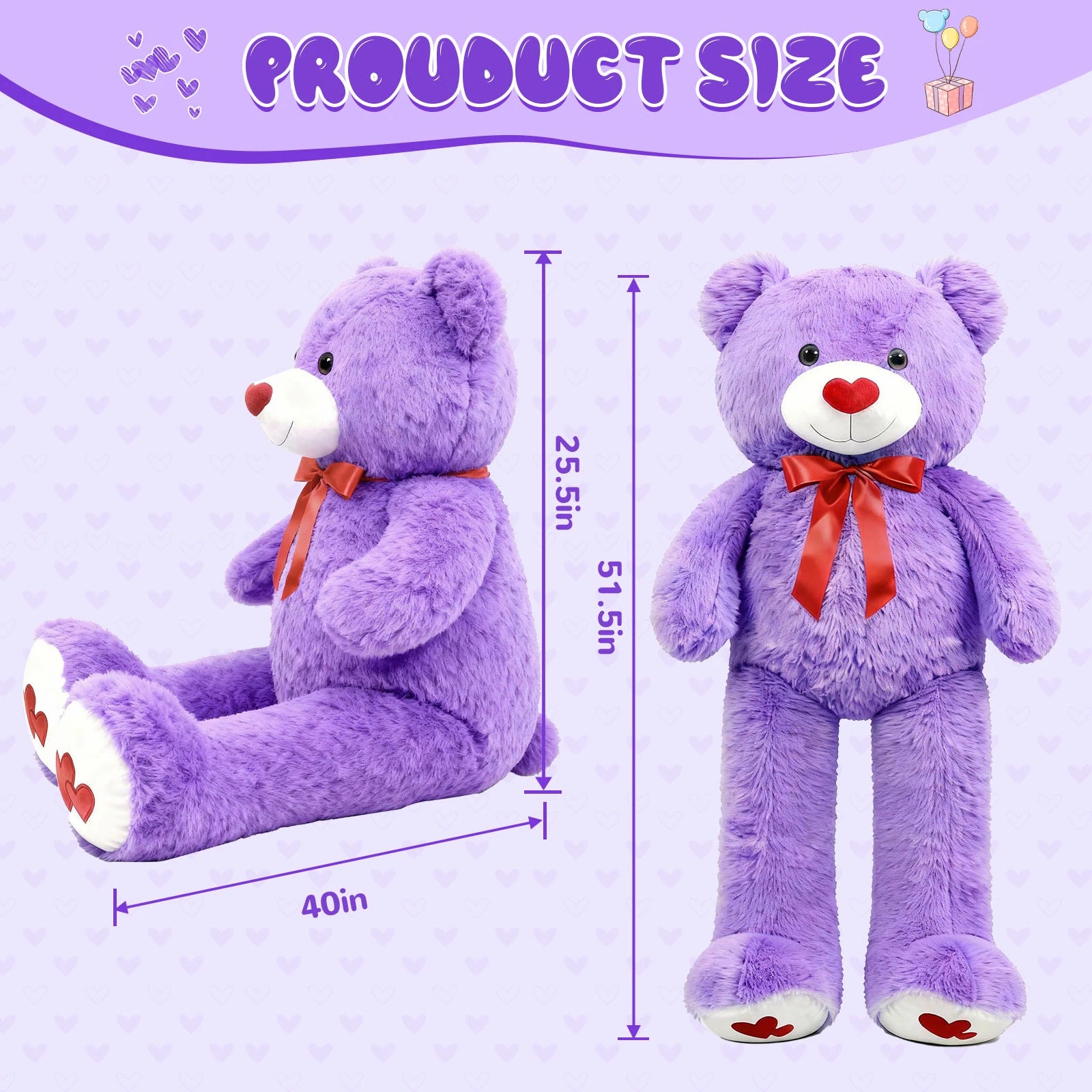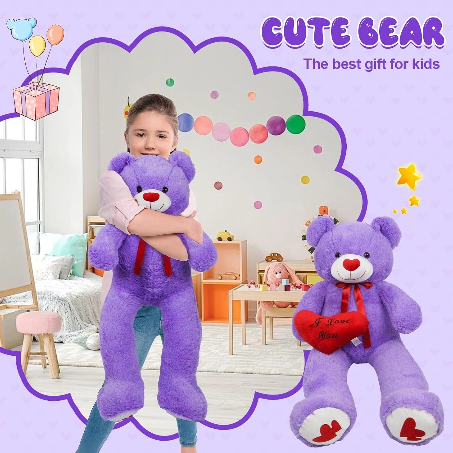 SRANWOW 51.2 Inch Giant Teddy Bear with Soft Heart Pillow, Plush Stuffed Animal, Valentine's Day Gift (Purple)