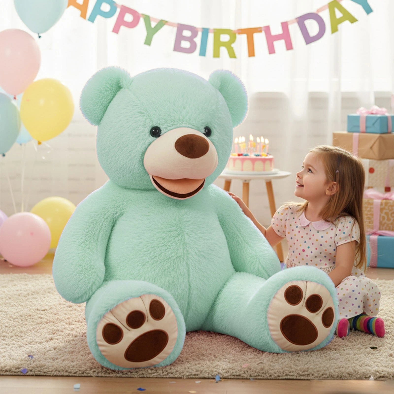 • DECORATIVE APPEAL: Makes an eye-catching addition to bedrooms, playrooms, or nurseries with its oversized proportions. Ideal for birthdays, holidays, or special occasions, this oversized plush bear makes a memorable and heartwarming present.