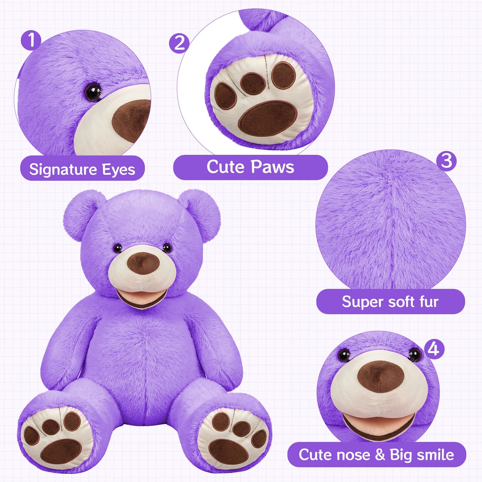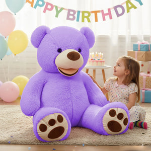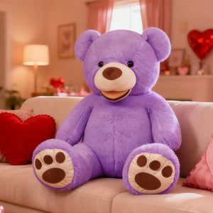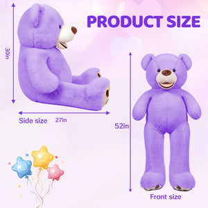 SRANWOW 52 Inches Giant Plush Teddy Bear Soft Gray Stuffed Animal with Paw Details (Purple)