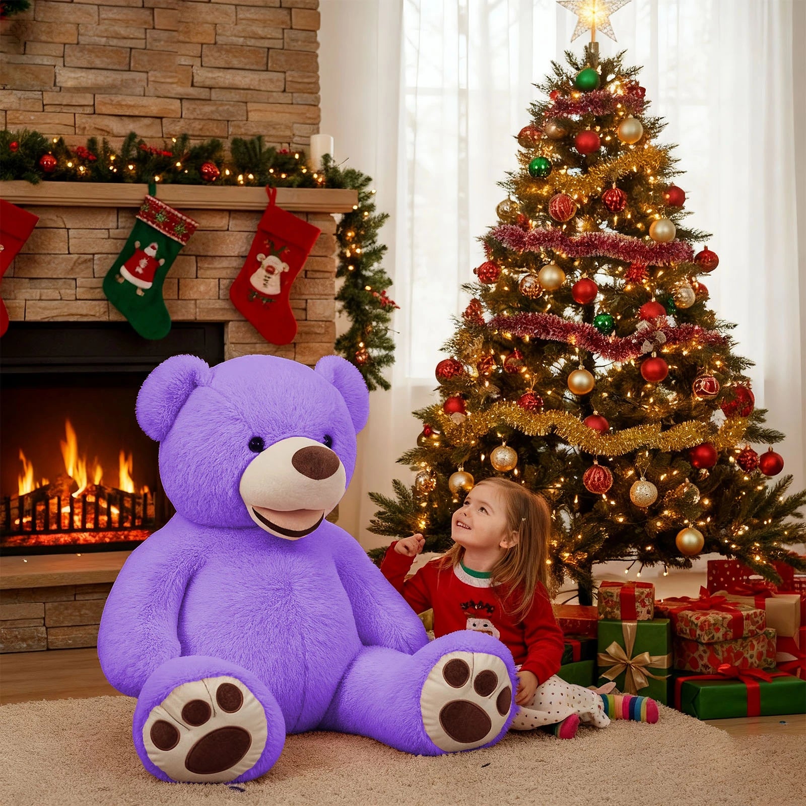 - DECORATIVE APPEAL: Makes an eye-catching addition to bedrooms, playrooms, or nurseries with its oversized proportions. Ideal for birthdays, holidays, or special occasions, this oversized plush bear makes a memorable and heartwarming present.