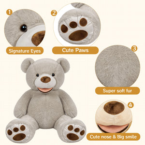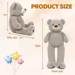 SRANWOW Giant Plush Teddy Bear, 52 Inches Tall, Soft Gray Stuffed Animal with Paw Details (Gray)