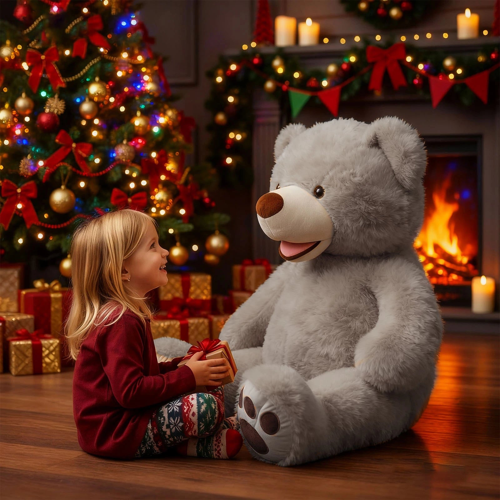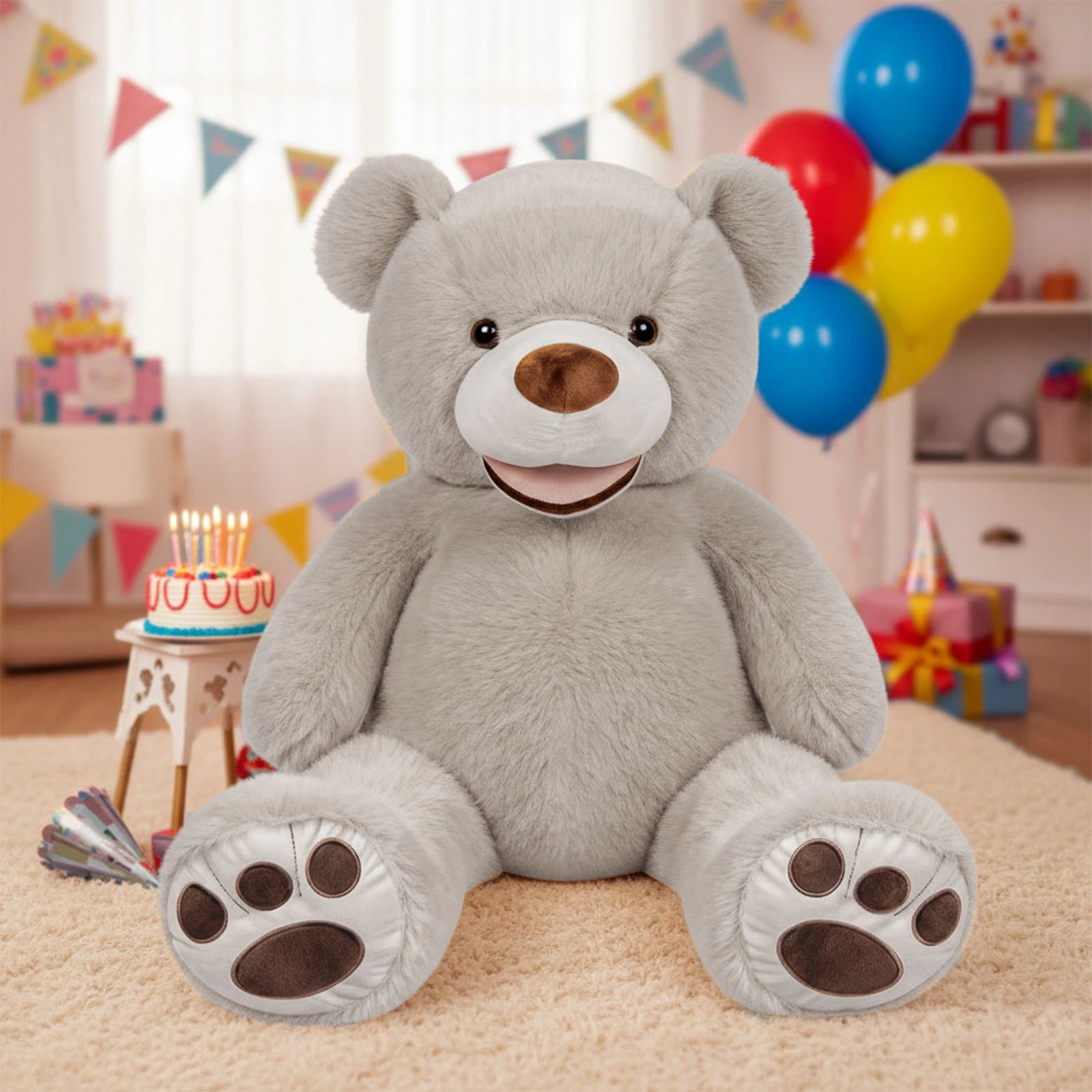 - DECORATIVE APPEAL: Makes an eye-catching addition to bedrooms, playrooms, or nurseries with its oversized proportions. Ideal for birthdays, holidays, or special occasions, this oversized plush bear makes a memorable and heartwarming present.