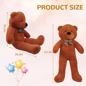 SRANWOW Giant Teddy Bear with Bow Tie, 51.2 Inches Tall, Super Soft Plush(Darkbrown)