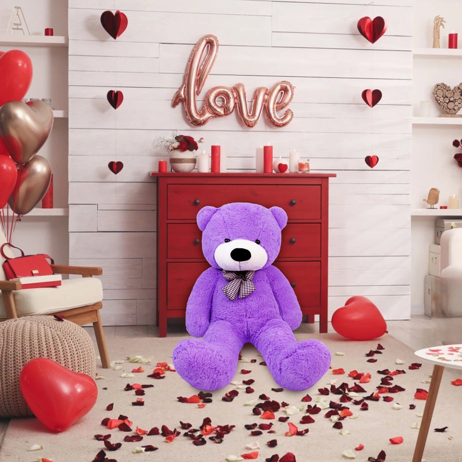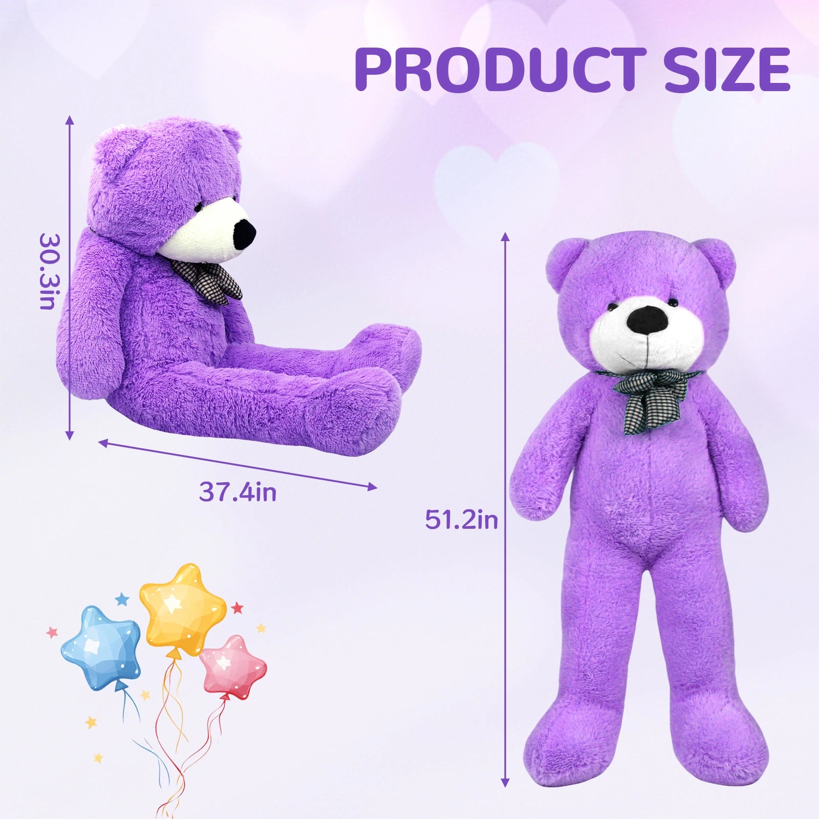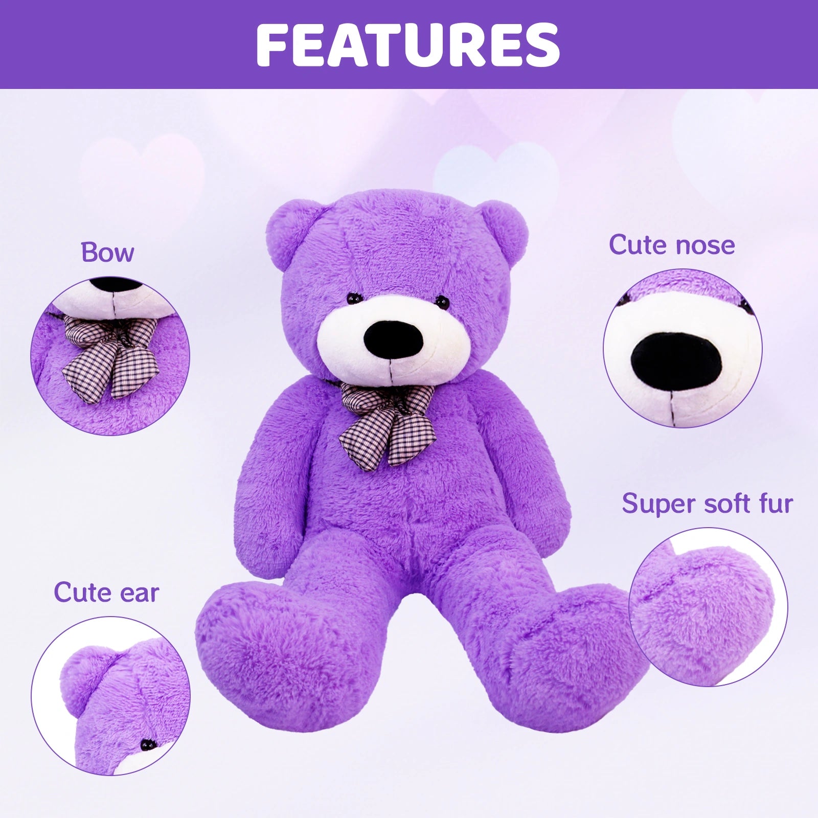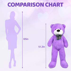 SRANWOW Giant Teddy Bear with Bow Tie, 51.2 Inches Tall, Super Soft Plush(Purple)